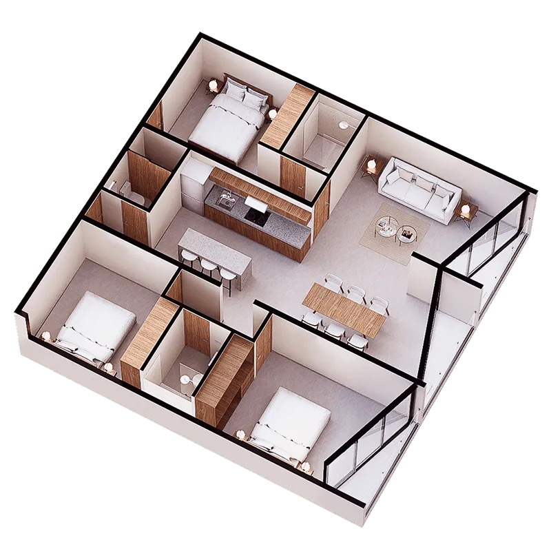 Este módulo es perfecto para aquellos que buscan un espacio amplio para vivir o alquilar, con la flexibilidad del sistema Lock-Off para maximizar el retorno de inversión.